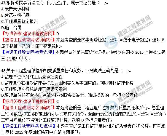 【老師解析】2015年二建法規(guī)及相關(guān)知識試題及答案(43-48題)