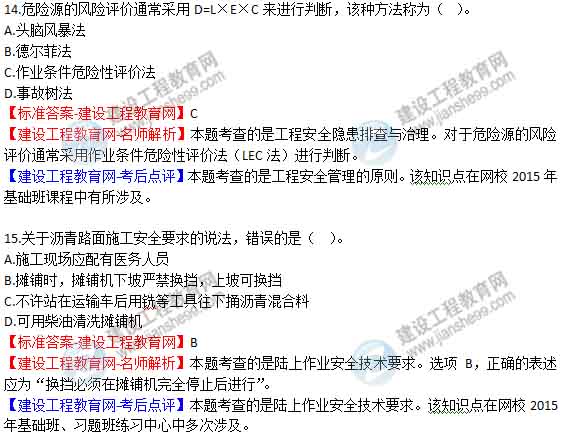 【建設(shè)工程教育網(wǎng)-考后點評】本題考查的是工程質(zhì)量控制方法。該知識點與網(wǎng)校2015年模擬試題(一)的第14題為原題。
