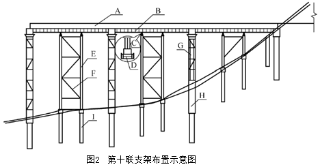 因第九聯(lián)橋墩墩身較高,移動模架采用橋下組拼、整體垂直提升安裝方案,第十聯(lián)箱梁待隧道貫通后采用樁柱梁式支架(第十聯(lián)支架布置示意圖見圖2)施工,由此造成工期推遲一個月。上述方案上報相關(guān)單位并經(jīng)批復后開始施工,根據(jù)相關(guān)規(guī)定,施工單位提出了以下索賠要求: