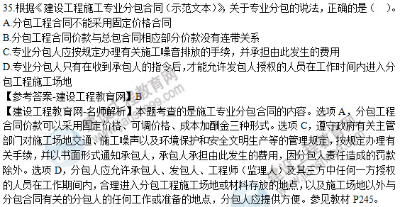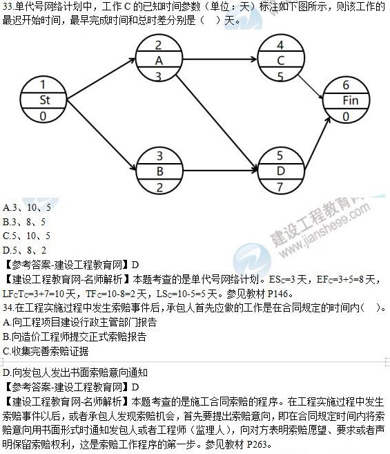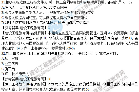 2019年二級建造師《建設(shè)工程施工管理》試題及答案解析31-35