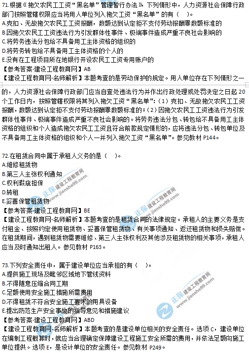 2019年二級(jí)建造師法規(guī)考試真題及答案解析71-75