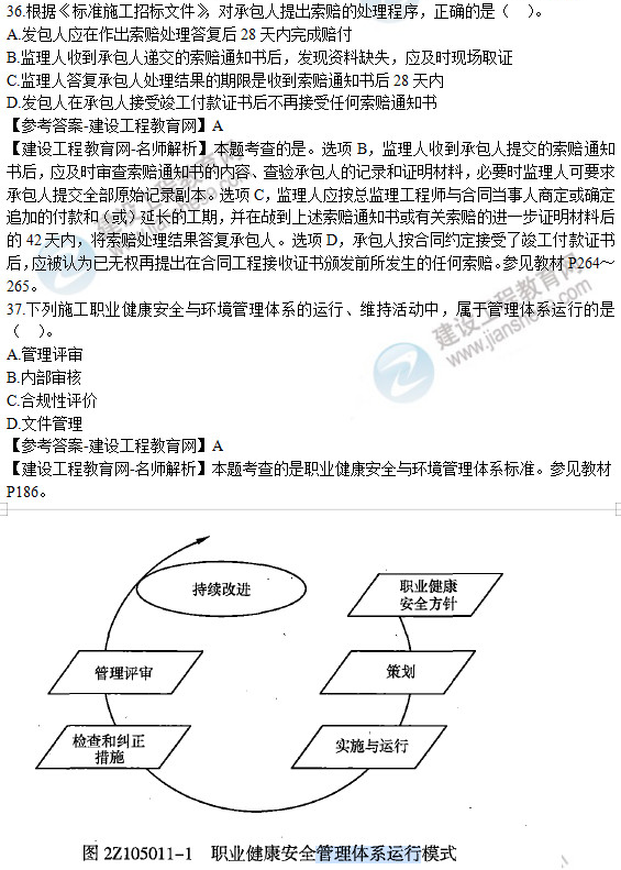 2019年二級建造師《建設(shè)工程施工管理》試題及答案解析36-40