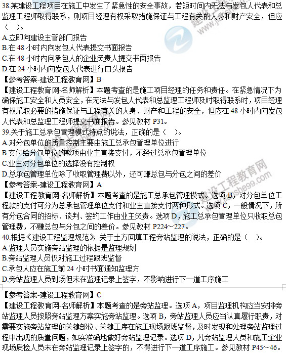 以上就是為大家分享的2019年二級建造師考試《建設(shè)工程施工管理》試題及答案解析,建設(shè)工程教育網(wǎng)將持續(xù)關(guān)注2020年二級建造師考試的相關(guān)信息。更多2020年二級建造師考試內(nèi)容,盡在建設(shè)工程教育網(wǎng)二級建造師欄目!