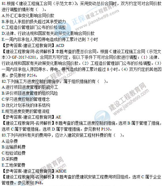 2019年二級建造師《建設(shè)工程施工管理》試題及答案解析81-85