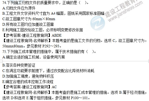 2019年二級建造師《建設(shè)工程施工管理》試題及答案解析71-75