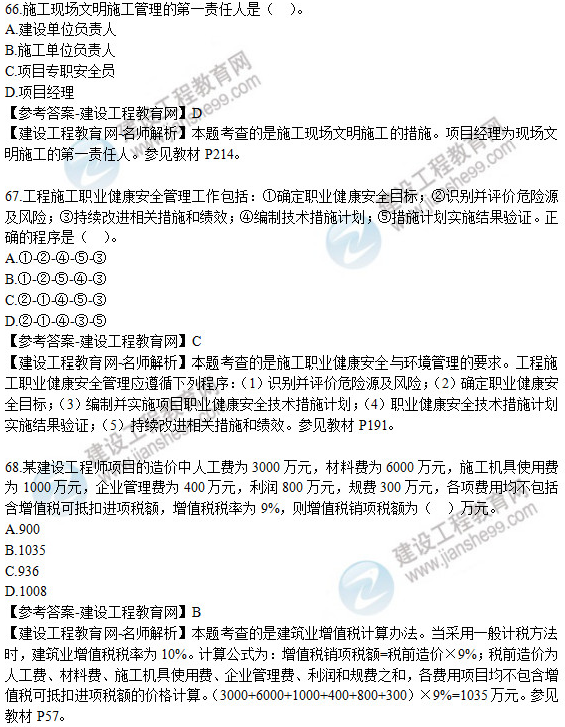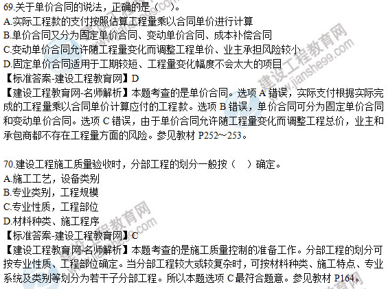 2019年二級建造師《建設(shè)工程施工管理》試題及答案解析66-70
