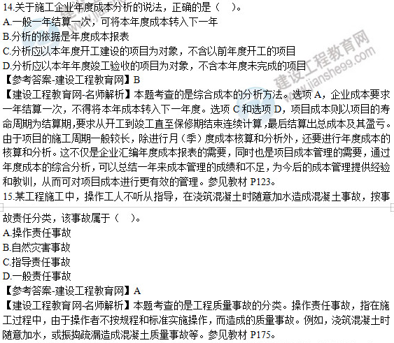 2019年二級建造師《建設(shè)工程施工管理》試題及答案解析11-15