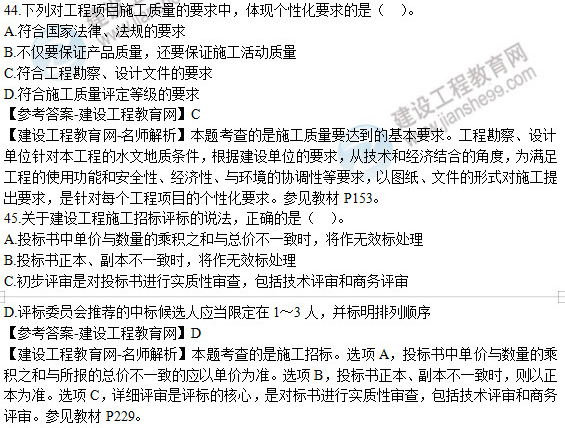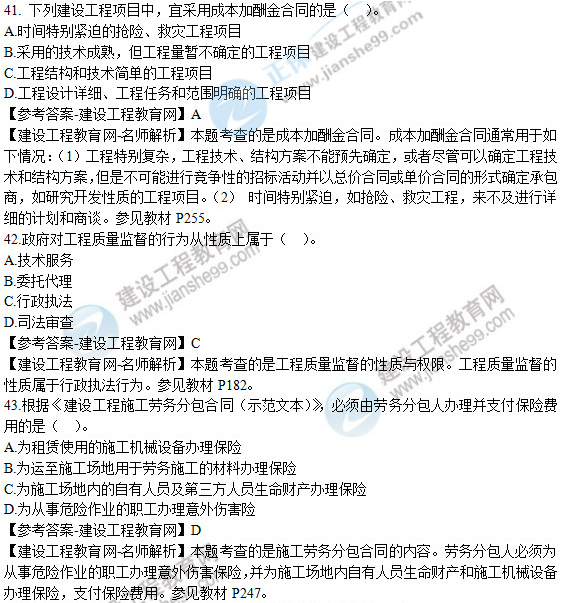 2019年二級建造師《建設工程施工管理》試題及答案解析41-45