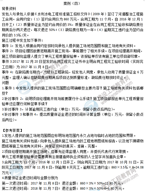 以上就是為大家分享的2019年二級建造師考試水利實務(wù)案例分析試題及答案解析,建設(shè)工程教育網(wǎng)將持續(xù)關(guān)注2020年二級建造師考試的相關(guān)信息。更多2020年二級建造師考試內(nèi)容,盡在建設(shè)工程教育網(wǎng)二級建造師欄目!