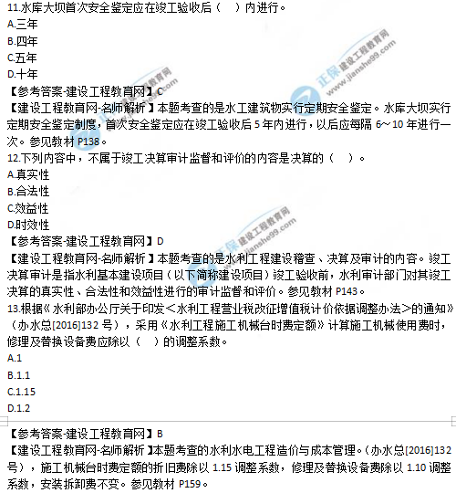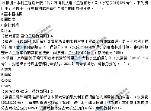 2019年二級建造師水利實(shí)務(wù)選擇題11-15試題及答案解析