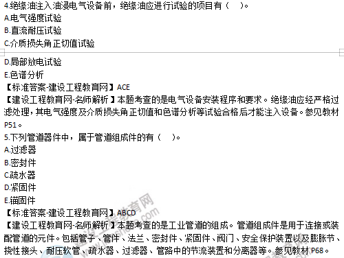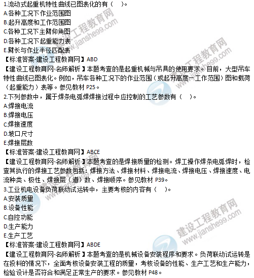 2019年二級建造師機電實務(wù)多選題1-5試題及答案解析