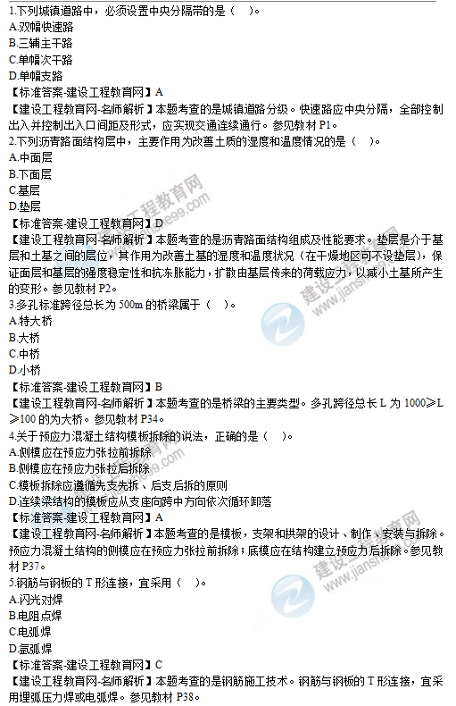 2019年二級(jí)建造師市政實(shí)務(wù)選擇題1-5試題及答案解析