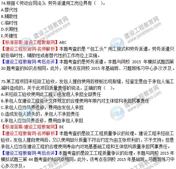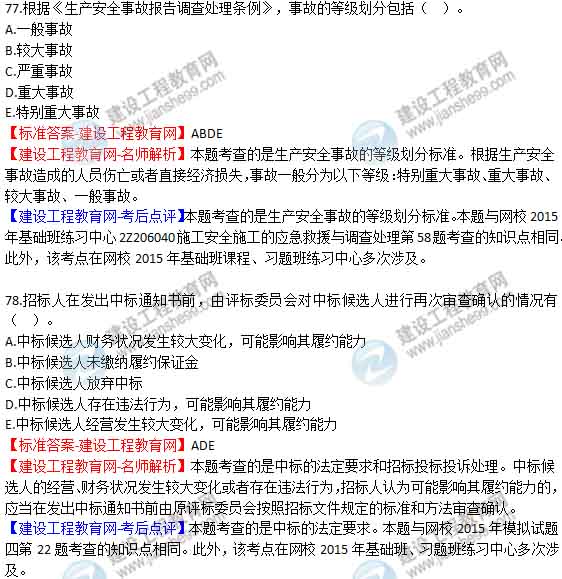 2015年二級建造師《建設(shè)工程法規(guī)及相關(guān)知識》答案及解析由老師整理而成,部分網(wǎng)站未經(jīng)許可擅自轉(zhuǎn)載、抄襲,造成內(nèi)容有所缺失或錯誤,請大家以建設(shè)工程教育網(wǎng)發(fā)布為準(zhǔn)!二建試題答案
