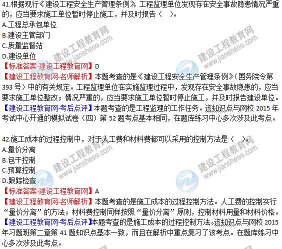 【老師解析】2015年二級建造師施工管理試題及答案(37-42題)