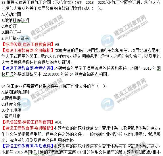 2015年二級建造師《建設(shè)工程施工管理》試題及答案(第79-84題),由老師【達(dá)江】帶領(lǐng)專業(yè)二級建造師考試教研組團(tuán)隊(duì)完成!