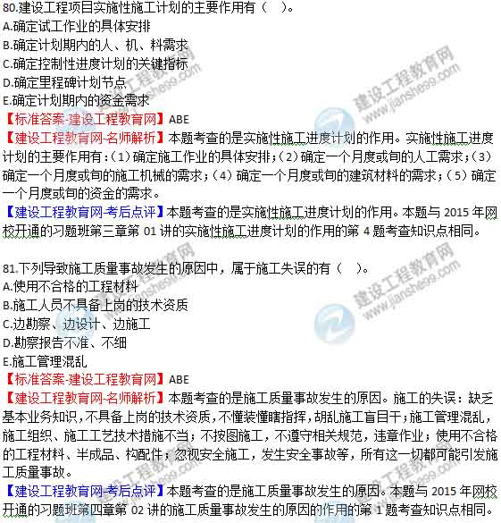 【老師解析】2015年二建施工管理試題及答案(79-84題)