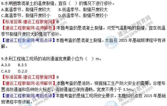 2015年二級(jí)建造師《水利水電工程管理與實(shí)務(wù)》答案及解析由老師整理而成,部分網(wǎng)站未經(jīng)許可擅自轉(zhuǎn)載、抄襲,造成內(nèi)容有所缺失或錯(cuò)誤,請(qǐng)大家以建設(shè)工程教育網(wǎng)發(fā)布為準(zhǔn)!