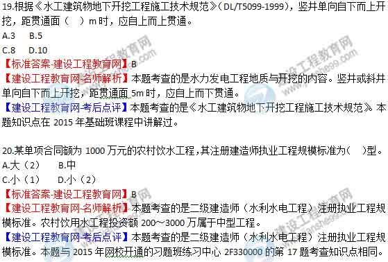 【老師解析】2015年二級建造師水利水電實務試題及答案(19-24題)