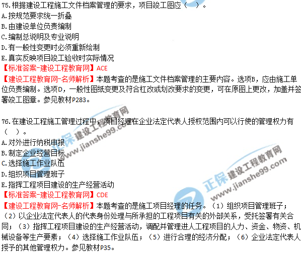 2018年二建《建設(shè)工程施工管理》試題及答案解析(71-80)