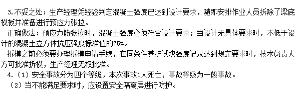 3.預(yù)應(yīng)力混凝土梁底模拆除工作有哪些不妥之處? 并說明理由。