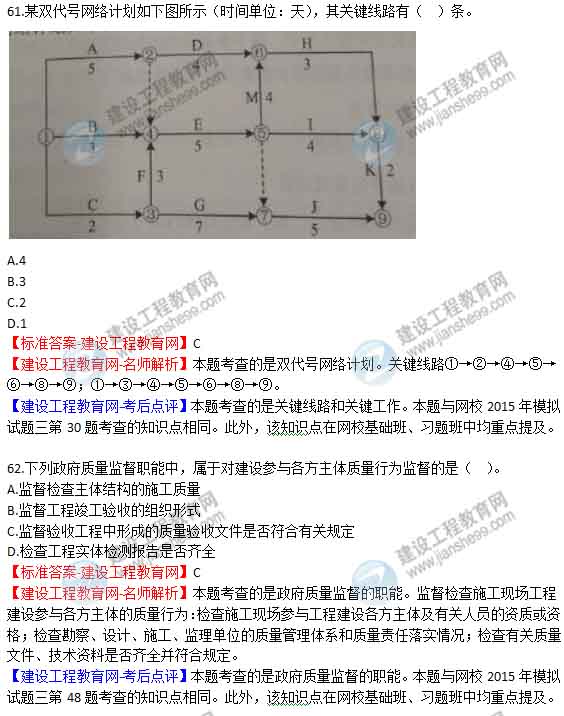 2015年二級建造師《建設(shè)工程施工管理》答案及解析由老師整理而成,部分網(wǎng)站未經(jīng)許可擅自轉(zhuǎn)載、抄襲,造成內(nèi)容有所缺失或錯誤,請大家以建設(shè)工程教育網(wǎng)發(fā)布為準(zhǔn)!jianshe99發(fā)布二建試題答案解析