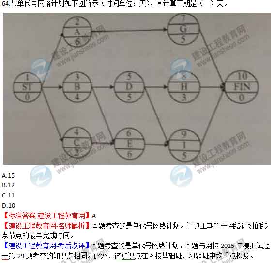 【老師解析】2015年二建管理試題答案及解析(61-66題)