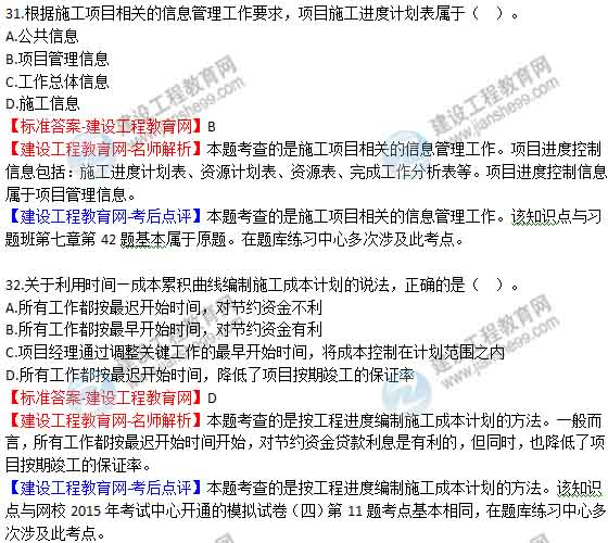 2015年二級建造師《建設(shè)工程施工管理》答案及解析由老師整理而成,部分網(wǎng)站未經(jīng)許可擅自轉(zhuǎn)載、抄襲,造成內(nèi)容有所缺失或錯誤,請大家以建設(shè)工程教育網(wǎng)發(fā)布為準(zhǔn)!2015二建試題答案解析