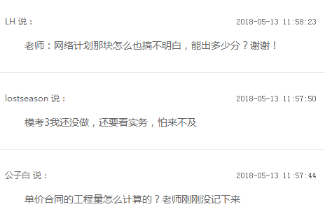 同時和學員在線互動,快速解答學員問題,多數(shù)學員對總價合同、清單計價、網(wǎng)絡計劃和索賠等都題出了疑問,豐老師也逐一認真做了回答 ,你也有如下類似的難題么?