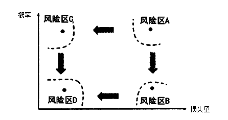 若某事件經(jīng)過風(fēng)險評估,它處于風(fēng)險區(qū)A,則應(yīng)采取措施,降低其概率,以使它移位至風(fēng)險區(qū)B;或采取措施降低其損失量,以使它移位至風(fēng)險區(qū)C.風(fēng)險區(qū)B和C的事件則應(yīng)采取措施,使其移位至風(fēng)險區(qū)D.