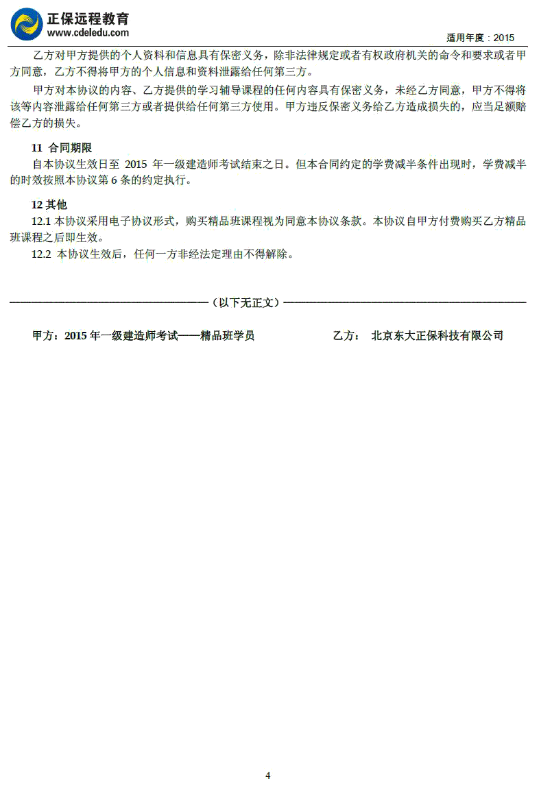 一級(jí)建造師“精品班”協(xié)議書