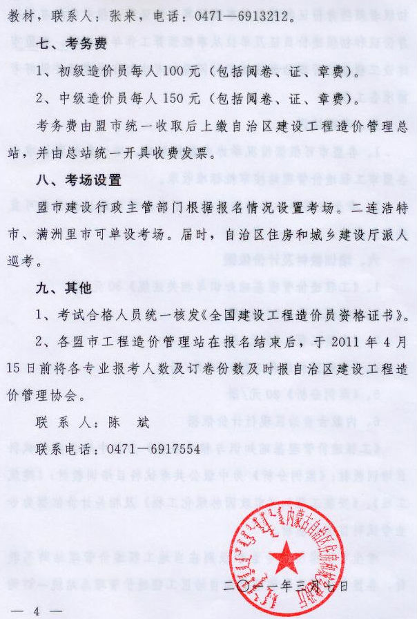 2011年內(nèi)蒙古造價員考試報名時間為3月10日-31日