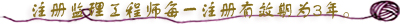 注冊監(jiān)理工程師每一注冊有效期為3年,注冊有效期滿需繼續(xù)執(zhí)業(yè)的,應當在注冊有效期滿30日前,按照本規(guī)定第七條規(guī)定的程序申請延續(xù)注冊。延續(xù)注冊有效期3年。延續(xù)注冊需要提交下列材料: ?。ㄒ唬┥暾埲搜永m(xù)注冊申請表; ?。ǘ┥暾埲伺c聘用單位簽訂的聘用勞動合同復印件; ?。ㄈ┥暾埲俗杂行趦冗_到繼續(xù)教育要求的證明材料。 在注冊有效期內,注冊監(jiān)理工程師變更執(zhí)業(yè)單位,應當與原聘用單位解除勞動關系,并按本規(guī)定第七條規(guī)定的程序辦理變更注冊手續(xù),變更注冊后仍延續(xù)原注冊有效期。