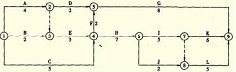 施工過(guò)程H、I、K進(jìn)行流水施工以后,原關(guān)鍵線路A→E→H→I→K的總持續(xù)時(shí)間為(4+3+2+11)月=20關(guān)鍵線路發(fā)生變化,新的關(guān)鍵線路有兩條,即線路A→E→H→J→L和線路A→E→H→I→L,計(jì)算工期都等于23個(gè)月(分別4+3+2+4+5+5=23;4+3+2+7+2+5=23),滿足合同工期要求。