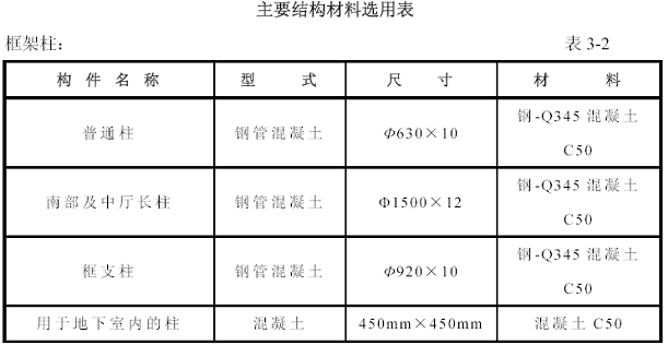 3.2.4 主要結(jié)構(gòu)材料選用表(見表3-2)