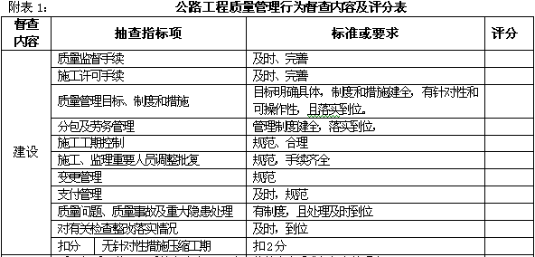 公路工程質(zhì)量管理行為督查內(nèi)容及評分表