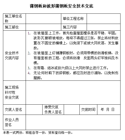 薄鋼板和波形薄鋼板安全技術(shù)交底