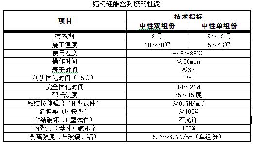 (4)結(jié)構(gòu)膠應(yīng)采用高模數(shù)中性膠,其性能應(yīng)符合下表規(guī)定: