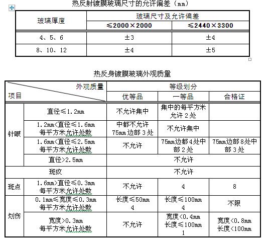 。2)玻璃幕墻采用玻璃的外觀質(zhì)量和性能應(yīng)符合國家現(xiàn)行標準的規(guī)定。當采用熱反射鍍膜玻璃對允許偏差及外觀質(zhì)量應(yīng)符合下表規(guī)定。