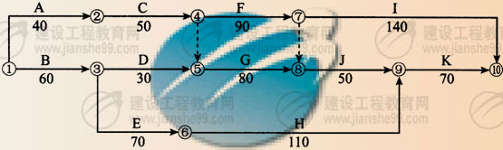?。ㄋ模?br /> 1、圖示網(wǎng)絡(luò)工期為320d,關(guān)鍵線為:A-C-F-I。