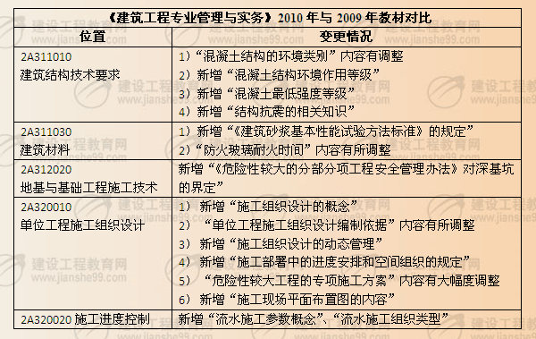 《建筑工程專業(yè)管理與實務》2010年與2009年教材對比