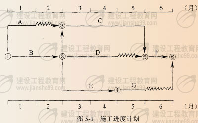 五、某工程,建設(shè)單位與施工單位按照《建設(shè)工程施工合同(示范文本)》簽訂了施工承包合同。合同約定:工期6個月;A、B工作所用的材料由建設(shè)單位采購;合同價款采用以直接費為計算基礎(chǔ)的全費用綜合單價計價;施工期間若遇物價上漲,只對鋼材、水泥和骨料的價格進行調(diào)整,調(diào)整依據(jù)為工程造價管理部門公布的材料價格指數(shù)。招標文件中工程量清單所列各項工作的估算工程量和施工單位的報價如表5-1所示,該工程的各項工作按最早開始時間安排,按月勻速施工,經(jīng)總監(jiān)理工程師批準的施工進度計劃如圖5-1所示。