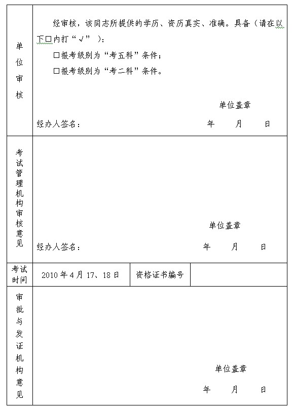2. 審批與發(fā)證機(jī)構(gòu)意見欄由省人事考試局填寫。