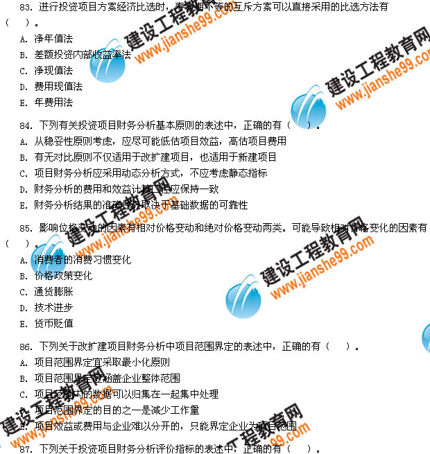 2009年咨詢工程師考試《項目決策分析與評價》答案