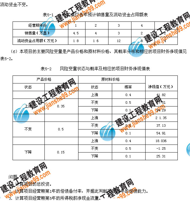 (5)項(xiàng)目經(jīng)營(yíng)期各年銷售量及流動(dòng)資金占用額見(jiàn)表5-1。為計(jì)算簡(jiǎn)便,假設(shè)生產(chǎn)標(biāo)準(zhǔn)桌燈占用的