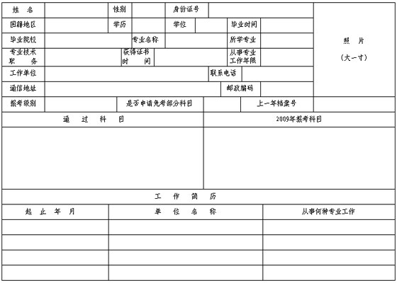 | 考試時間 | 2009年9月5、6日 | 資格證書編號 | |