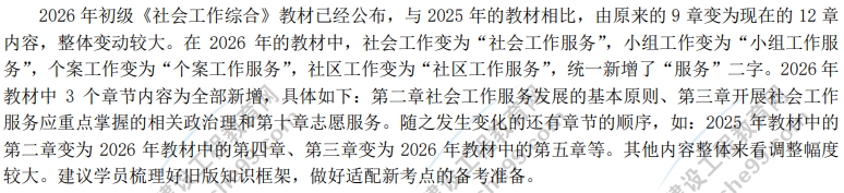 【社會社】2026初級社會工作綜合能力考試教材變動情況