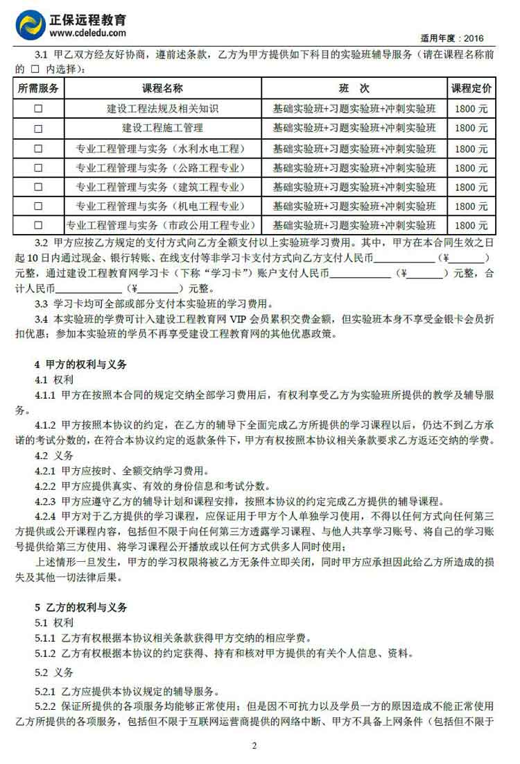 二級建造師“實驗班”協(xié)議書