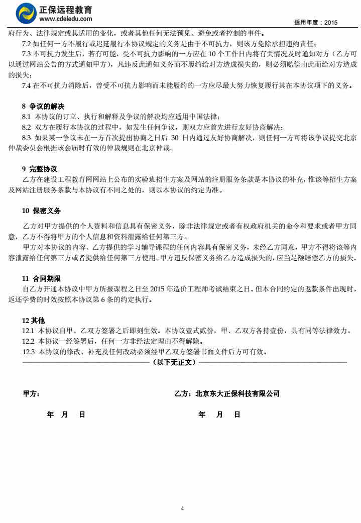 造價(jià)工程師“實(shí)驗(yàn)班”協(xié)議書