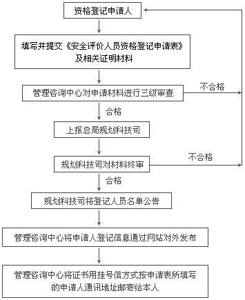安全評(píng)價(jià)人員資格登記、證書(shū)頒發(fā)工作流程圖