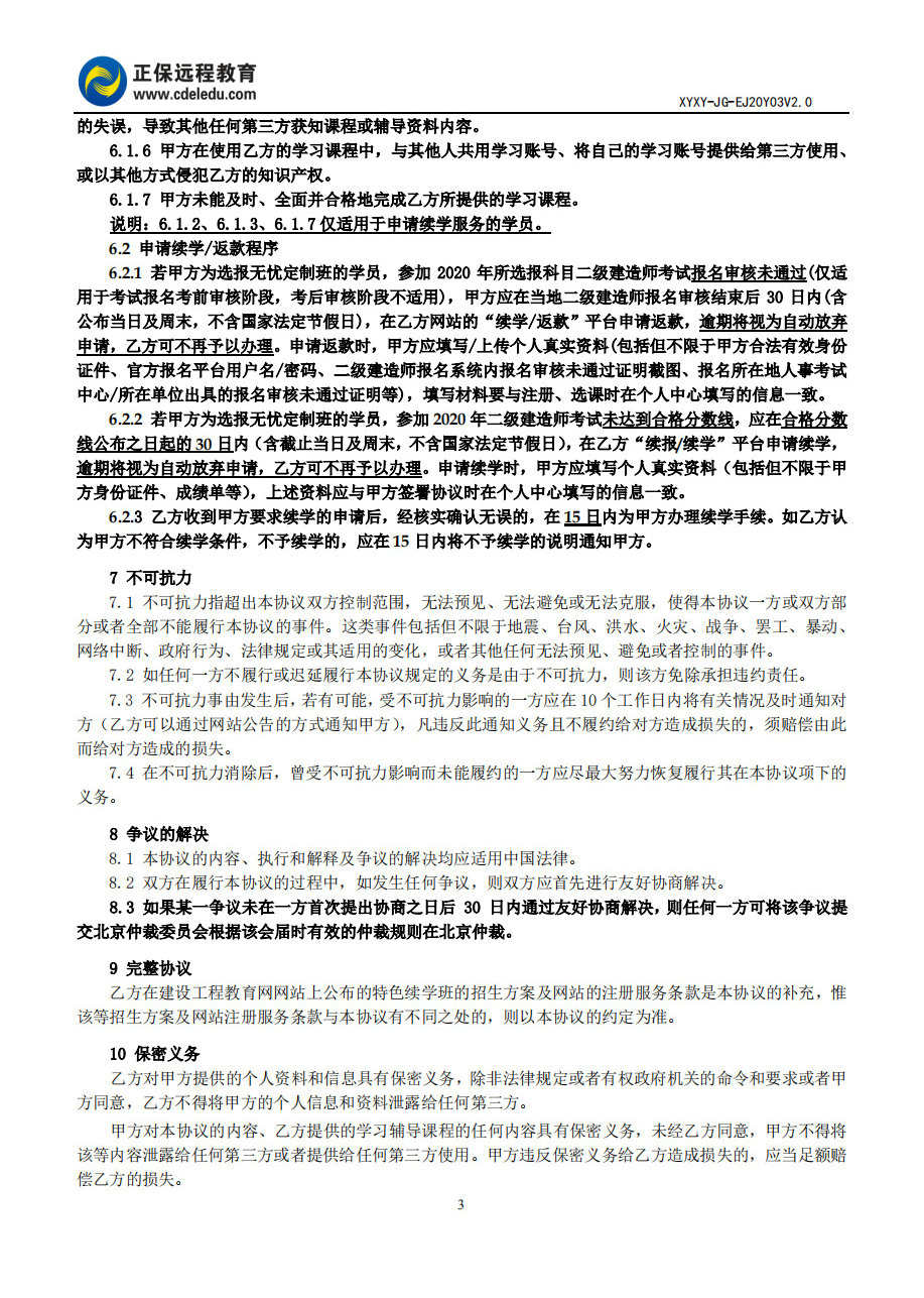 2020年二級(jí)建造師無憂定制班協(xié)議書